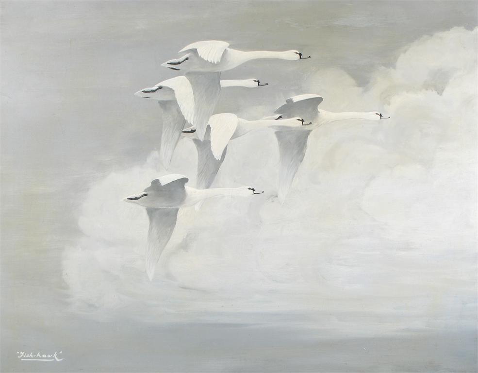 Charles de Feo 'Fish-hawk' (American 1892-1978) Swans in flight Signed Fish-hawk Oil on canvas 71...