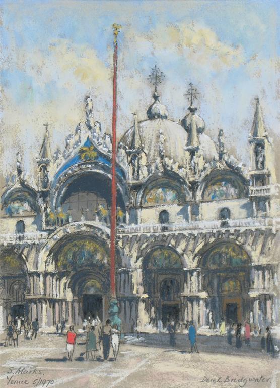 ‡ Derek Bridgwater (20th Century) Saint Mark's, Venice Signed in pencil, inscribed S. Marks, Venice and dated 5/1970 Pastel 28 x 20cm; 10½ x 8in