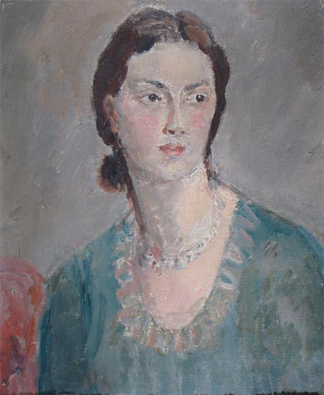 Dame Ethel Walker (1861-1951) Self portrait in a green blouse Signed verso Oil on canvas 51 x...