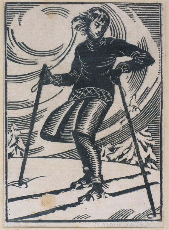 ‡ O. Stankowska The skiing girl Signed and dated 1928 Woodcut 20 x 14.5cm; 8 x 5¾in
