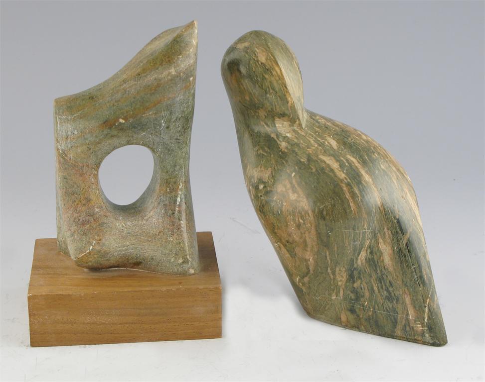 Pamela Rydzewski (d.1991) Abstract form Soapstone on a wood base 15cm; 6in high With a marble...