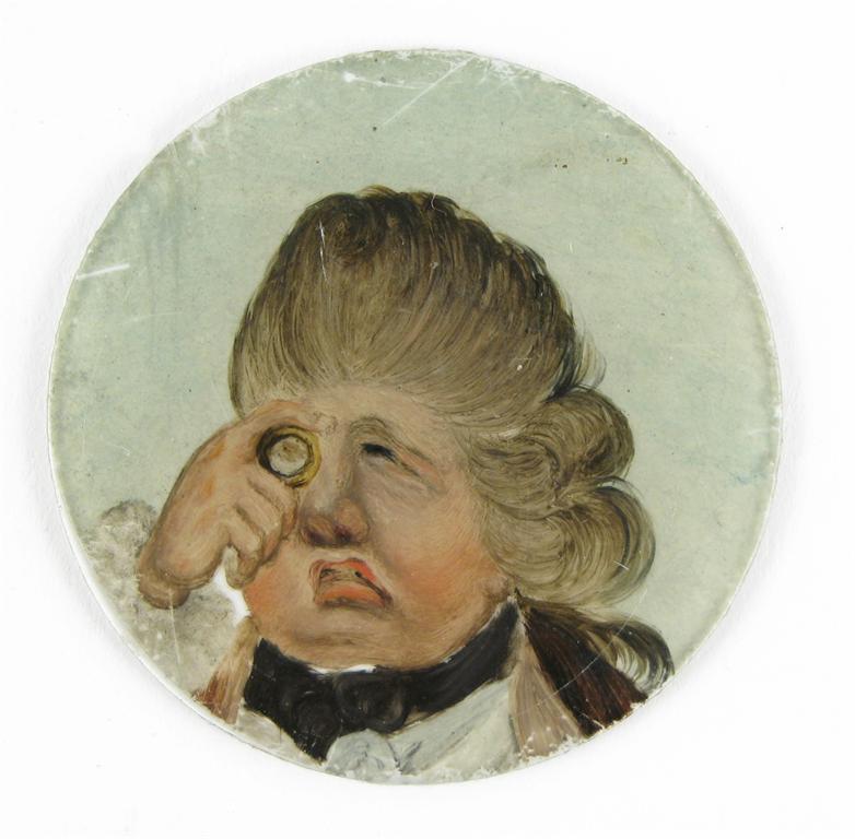 English School 18th Century Portrait of a gentleman holding an eye glass Circular