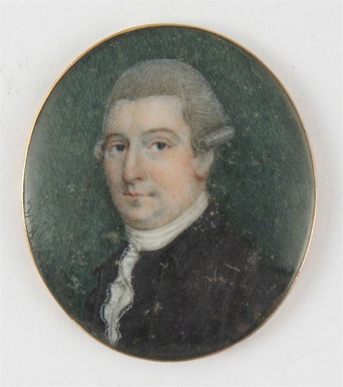 English School c. 1760 Portrait of a gentleman wearing a brown coat and white stock Oval