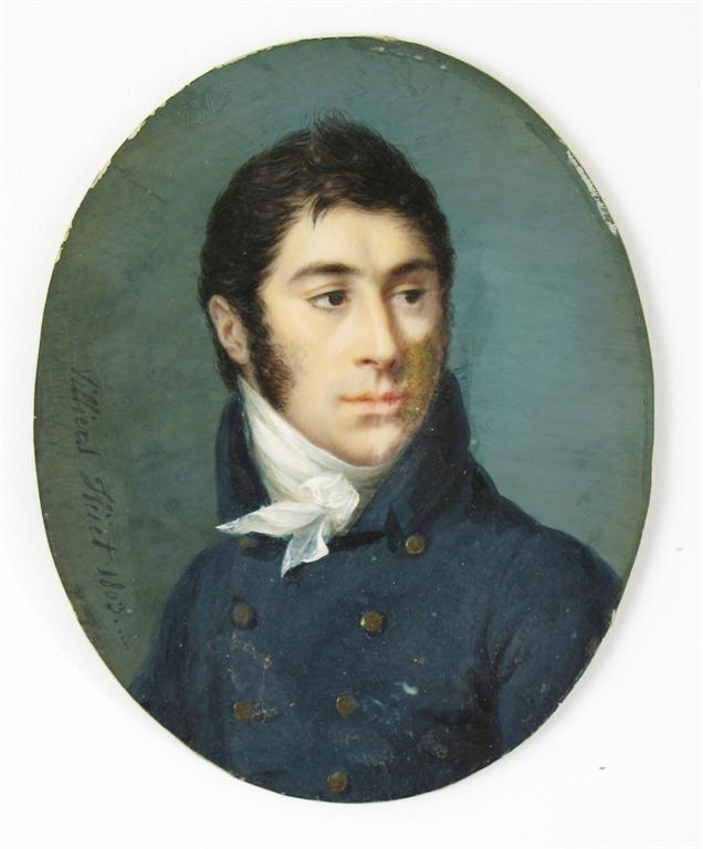 Jean François Marie Villiers-Hüet (French 1772-1813) Portrait of a gentleman in a blue coat...