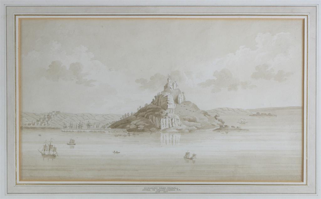 Attributed to William Daniel (1769-1837) View of St St Michael's Mount Sepia washes over pencil...