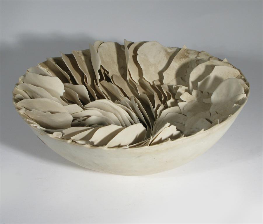 A Peter Simpson porcelain fungus form bowl impressed seal marks, losses 30.5cm. diam.