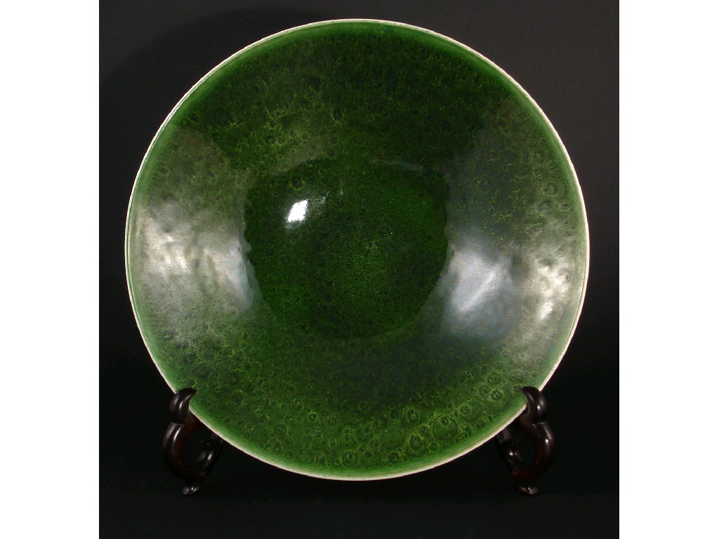 A Large Poole Pottery Studio bowl the interior glazed green printed Poole Studio mark 34cm. diam.
