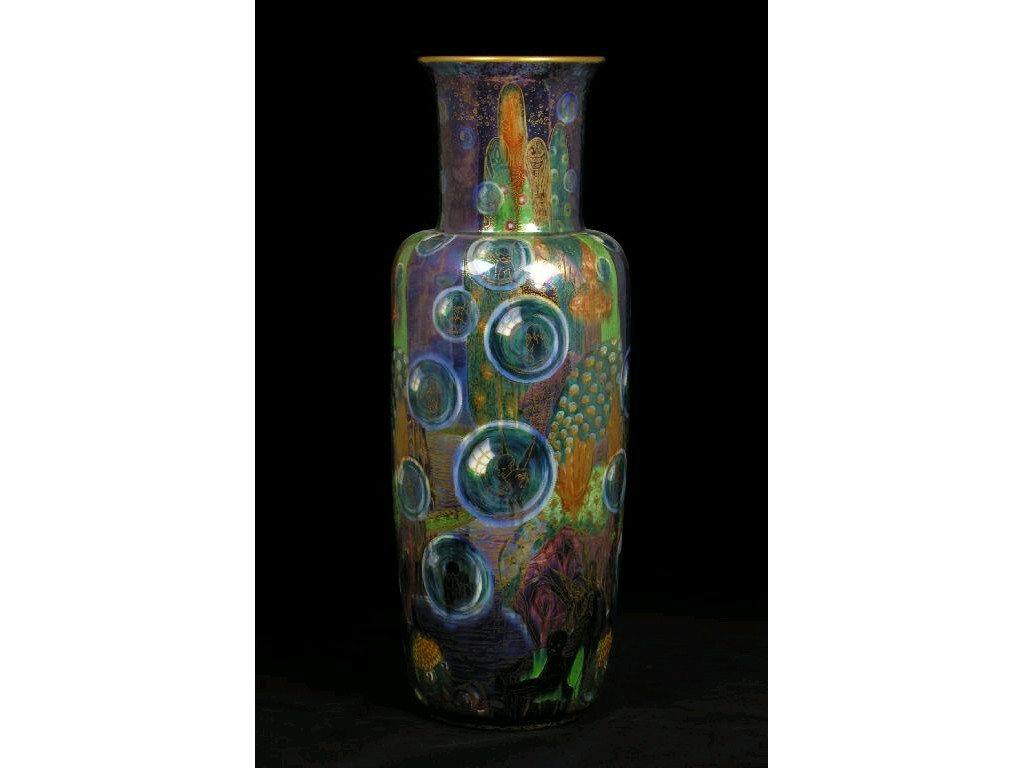An Important Wedgwood Fairyland lustre vase designed by Daisy Makeig-Jones, decorated in the 'Bubbles' pattern on a Midnight ground, printed and painted in colours and gilt printed Wedgwood mark, original paper label 54cm. high