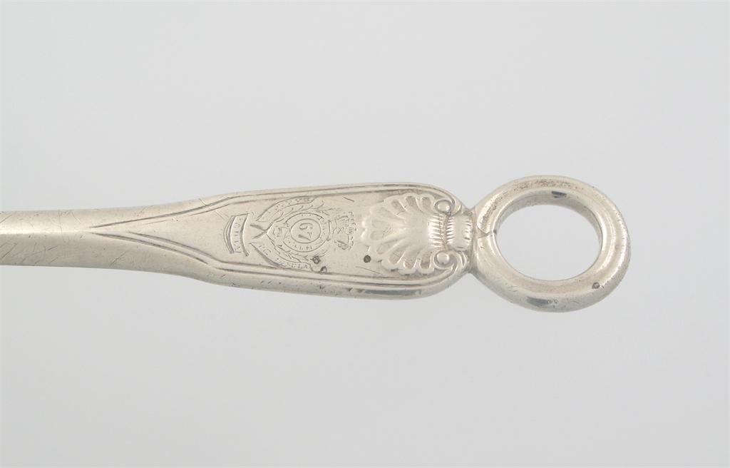 Regimental interest: A Victorian meat skewer, Fiddle, Thread and Shell pattern, engraved with the badge of the South Hampshire Regiment (67th foot), 10.75in (27.3cm) long, 3oz.