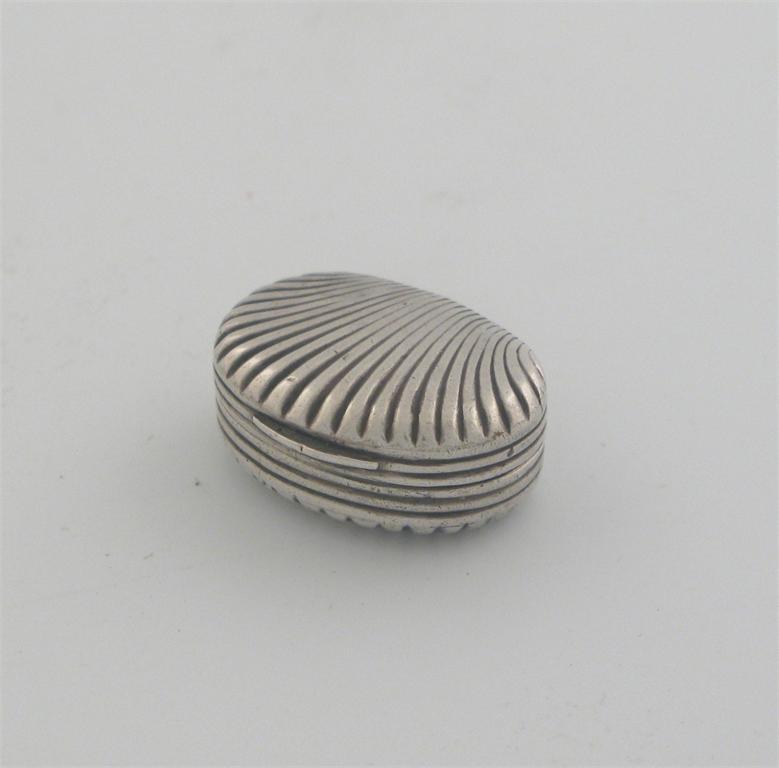 A George III small vinaigrette, in the form of a fluted shell, reeded sides and a simulated filigree grille, by Matthew Linwood, Birmingham 1804, 1in (2.5cm) long,