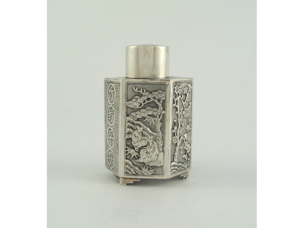 A late 19th / early 20 century Chinese hexagonal tea canister