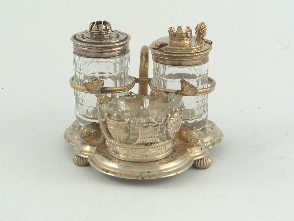 Royal Naval Interest: a late Victorian breakfast cruet with Naval crown finials and a salt