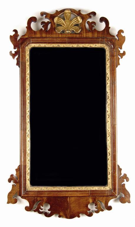 A 19th century mahogany and parcel gilt fret frame wall mirror