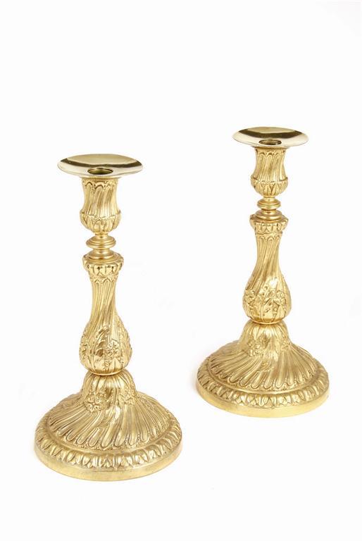 A pair of Louis XV style ormolu candlesticks
