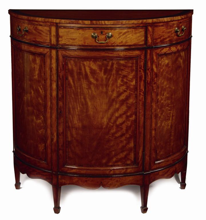 A George III style satinwood and kingwood banded demi-lune commode