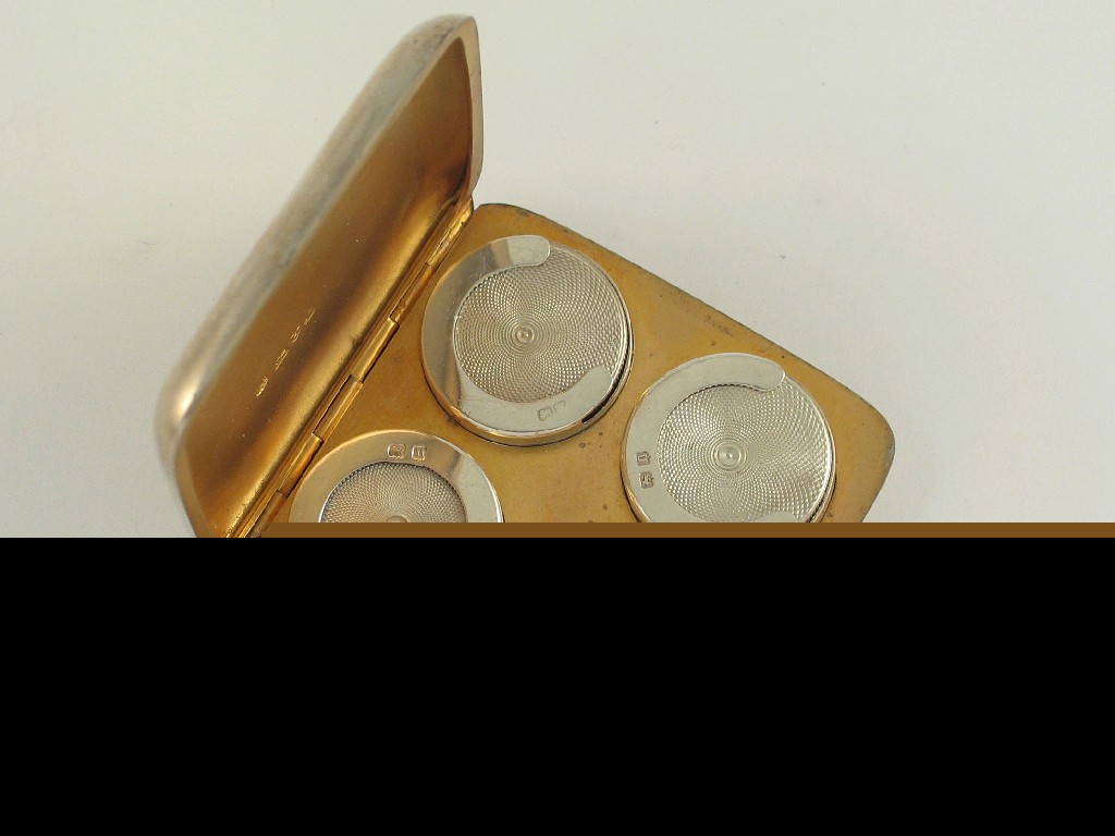 A modern square sovereign case, with four sprung holders inside, by W. Neale, Chester 1912, 2.2in (5.5cm), 2oz.