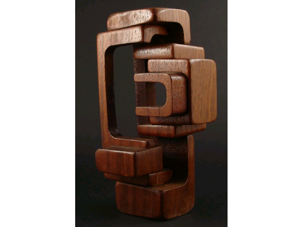 A Brian Wilsher wooden sculpture abstract inter-connecting forms signed in pencil