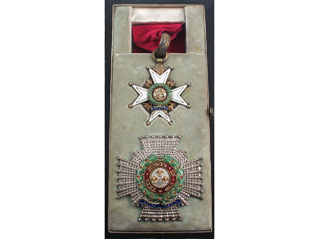 The Most Honourable Order of The Bath, K.C.B. (Military) Knight Commander's neck badge, silver gilt, and enamel, hallmarks for London 1897, complete with acorn ornamented gold suspension ring and neck cravat; breast star, in silver, silver-gilt and enamel, contained in original case [ clasp damaged ] by R. & S. Garrard & Co; Crimea 1854-56, 1 clasp Sebastopol (Comm r . Geo. G. Randolph. R.N.), officially impressed naming; France, Legion d'Honneur Chevalier's breast badge; Turkey, Order of the Medjidie, 4 th Class; Turkish Crimea, Sardinian issue, unnamed, mounted for wearing (Medjidie placed before Legion d'Honneur). The K.C.B extremely fine, others very fine and slight damage to enamel on Legion d'Honneur .