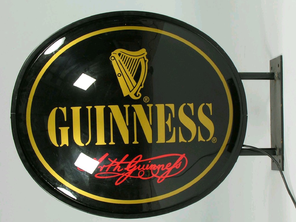 A large Guinness advertising wall light elliptical form 88cm. wide