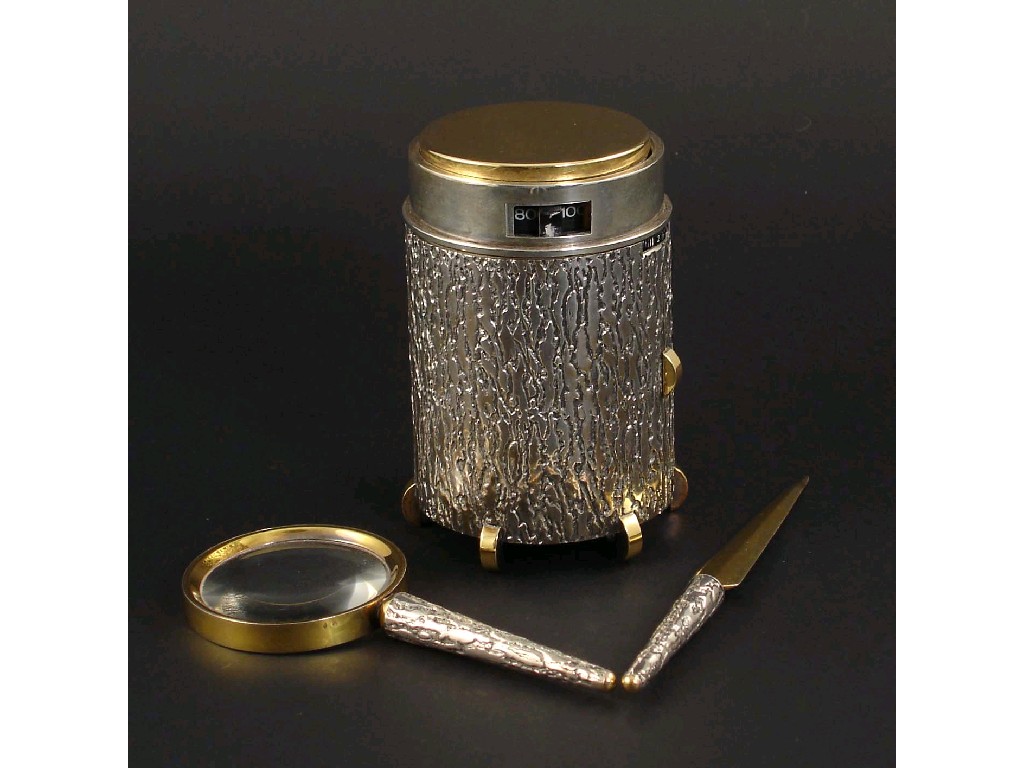 A Sony TR1829 radio for Boucheron and a silver matching paperknife and magnifying glass stamped...
